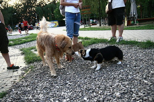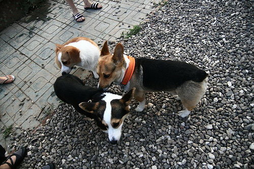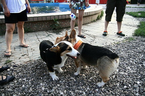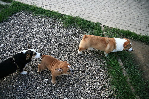 鬥牛跟柯基...這隻柯基跟非凡一樣大喔 只是他的耳朵還沒有立起來...