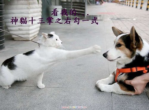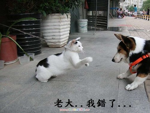 只是那隻豬頭狗直接衝上去 ......真的被賞了兩個貓巴掌說