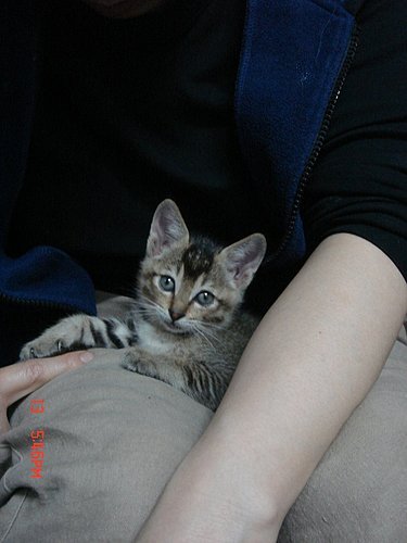 結果竟然是一隻大概一個多月大的貓咪.............我監持要把他帶回家..因為外面下著雨