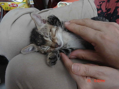 我一路上小心翼翼的用一隻手就捧著他 他卻一動也不動 眼睛也沒有張開...