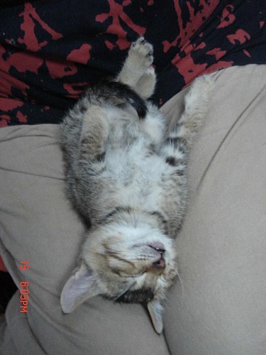 裝死貓.........從小訓練...他有時會眼睛閉著 但是怎麼知道他是真睡還是假睡咧?
